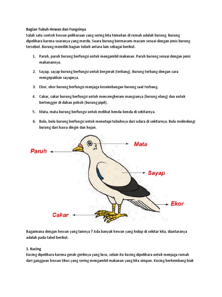 Bagian Tubuh Hewan Dan Fungsinya . Sumber Gambar : www.scribd.com